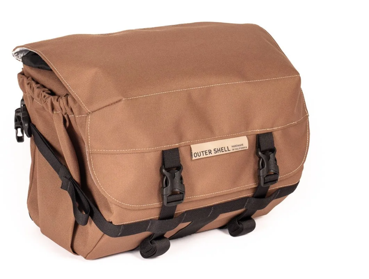 THIS. IS. MEGA. Our most requested bag is finally here. What took so long? Well, there are many large bags like this on the market, but we found they always ended up dragging on your wheel, folding over your head tube, or flopping around the bumpy stuff. It’s very hard to carry this much charcuterie without any type of metal support. So… we put one in. Yes, this bag has a 3D aluminum structure sewn between the layers!! A hybrid between a bag and a rack, the Mega Bar Bag is designed with three attachment options in mind -