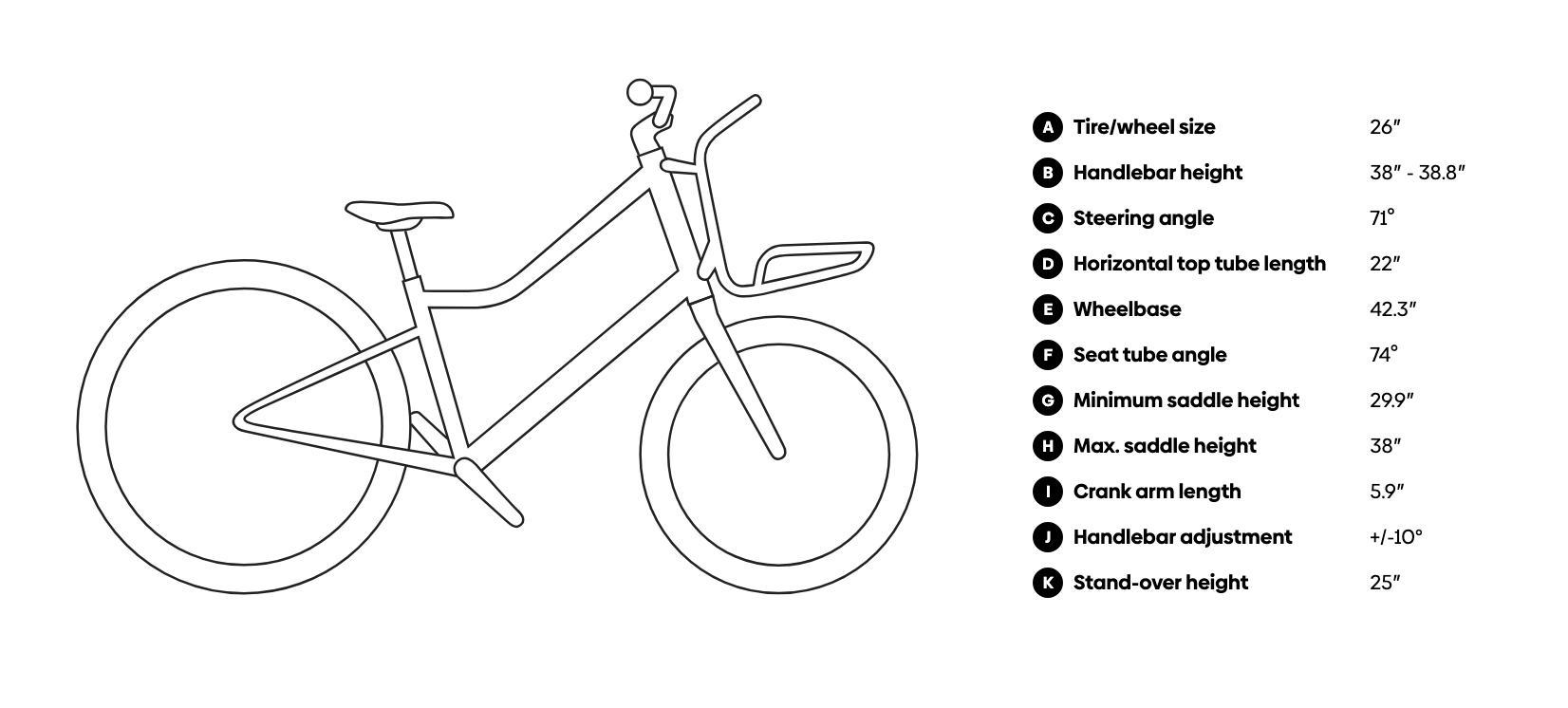 - Wheel size: 20" front, 26" rear